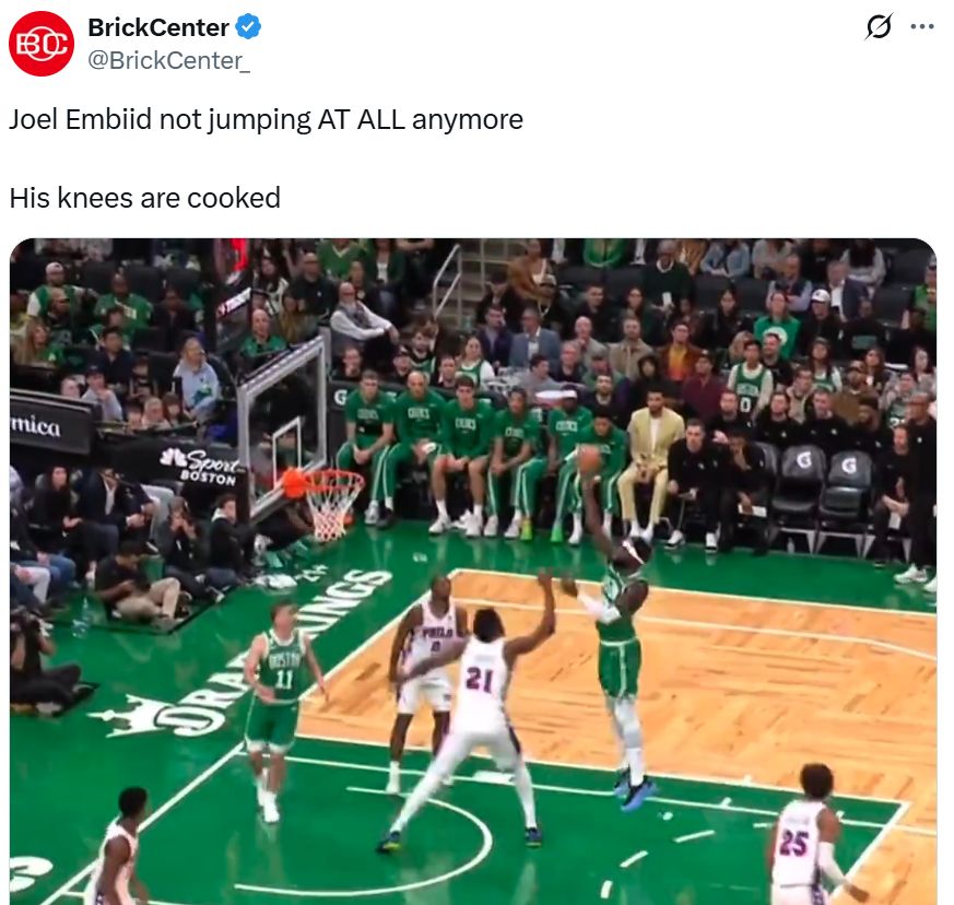 年赚6500万,复出首秀9中1!恩比德迷惑操作被嘲 美媒:膝盖废掉了